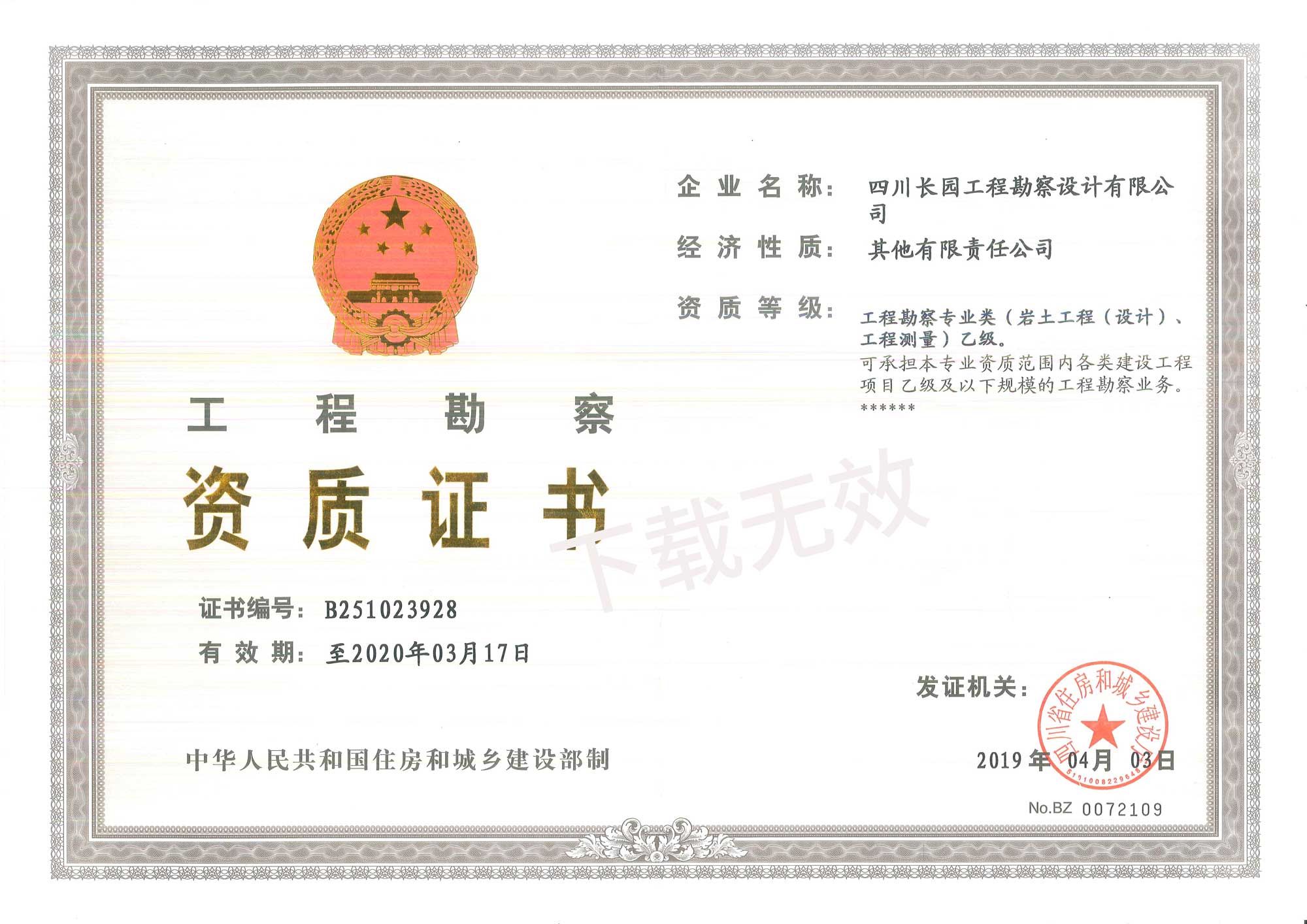 工程勘察资质证书